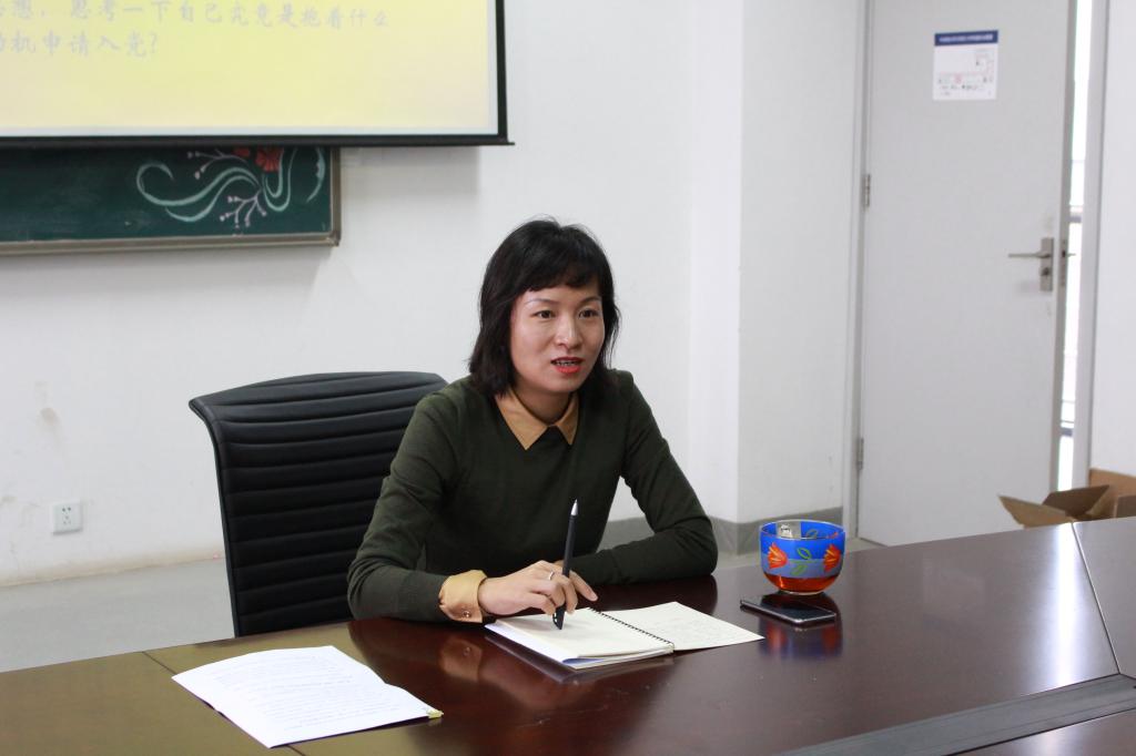 顾炎武先生曾说:“天下兴亡,匹夫有责。”梁启超先生也曾在《少年中国说》中将青年比作初升的红日、磅礴的汪洋、腾渊的潜龙、试翼的鹰隼,足以说明青年在推动社会进步和人类进程中的巨大作用。为了加强对入党积极分子的党性修养,使其能够拥有正确的入党动机,从而将个人命运与国家命运紧密相连,11月30日上午8:00,在学院7号楼313会议室内,437bwin必赢国际党总支书记吕丽就“如何做一名合格的共产党员”这一话题与2014级入党积极分子进行了研讨交流。
