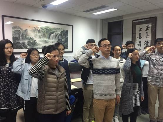 2016年10月31日,我院2016级研究生党支部在沙河校区7号楼313会议室举行“两学一做”系列活动之重温入党誓词。活动旨在进一步增强党员的主体意识、奉献意识和先锋模范意识,让支部党员更加牢记党员的行为处事标准,从而发挥带头作用,为支部建设和班级建设贡献力量。活动由支部书记朱洁主持。