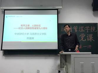 接着韩老师向我们讲述了中共从建党到建军的详细过程。中共建党之初,力量薄弱,对于军队的建设心有余而力不足,排除万难才终于在战火的夹缝中艰难地建立起了第一支人民军队。国共两党在争取祖国独立的过程中分分合合,矛盾冲突不断,然而中共面对民族大义,面对国家兴亡,不计前嫌,搁置个人情感,联合国民党,并团结人民群众,取得了国家的独立。值得关注的是,韩老师整堂课程都贯穿着一个观点即“人民群众的支持十分重要”,正是因为我党自始至终关注人民,联合人民,争取人民群众的支持,才能组建起真正的人民军队并发展壮大,党的发展欣欣向荣,才能在解放战争中,我党硬件处于劣势的情况下,最终赢得民心,结束国内的战争局面。