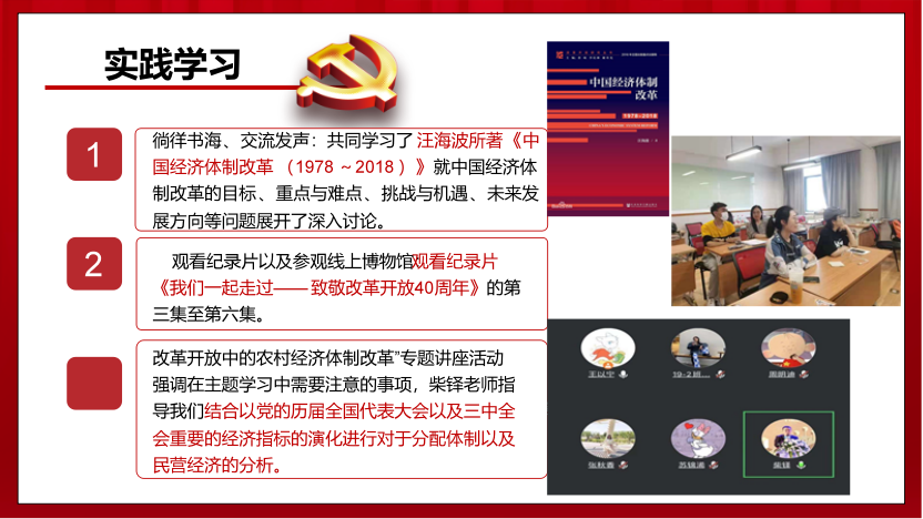 “恰同学少年,风华正茂,爱党敬党,吾辈自强。“政当少年”小组通过中国共产党第十一届三中全会专题研究感悟改革开放对于新时代建设成就、新时代总体规划、展望美好未来、担吾辈责任等方面存在的现实意义。经过困难与挫折我们才明白实事求是与改革创新的重要性。作为新时代青年我们应当树立远大理想,树立正确理想信念,将个人进步与祖国繁荣富强结合到一起,共同写下新的诗篇。