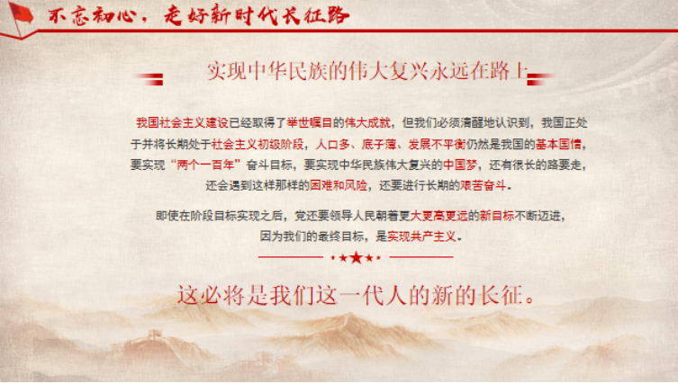 至此,本次党课接近尾声。在本次党课中,学员们回顾了二万五千余里的长征路,感受了革命先辈们为革命胜利做出的巨大牺牲,并被伟大的长征精神所感染,自发地思考如何继承长征精神,将其内化于心,外化于行,走好个人的长征路,推进时代的长征路。期望学员们能在今后继续保持党史学习的习惯,知党恩、跟党走,在党史学习中坚定理想信念,不忘初心,继续前行!