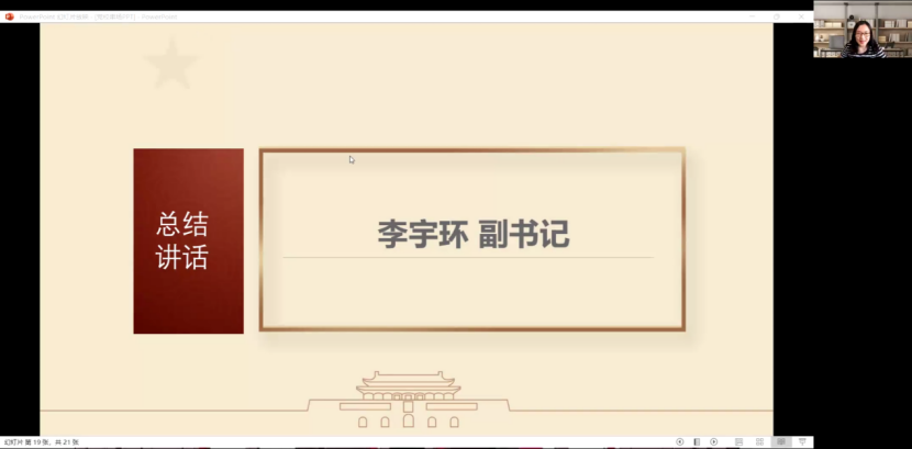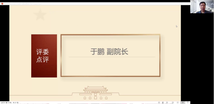 十个小组通过多样的学习形式,深入地探究了各自的主题,呈现了各具特色的成果汇报风格。展示汇报结束后,于鹏副院长对各小组的学习成果进行点评,以“知行合一”、“质形合一”、“习研合一”三个方面对同学们的成果展示给予了充分的肯定。永葆党的青春,实现理论创新的武装,是党组织建设的重要指示,于鹏副院长希望同学们通过深入学习党史,努力发挥党员的先锋模范作用,共同为增强党的生机与活力而奋斗。最后,于鹏副院长借用各小组的名称为大家送去期望:祝同学们“上下求索、奋楫笃行、造炬成阳、风华正茂”!
