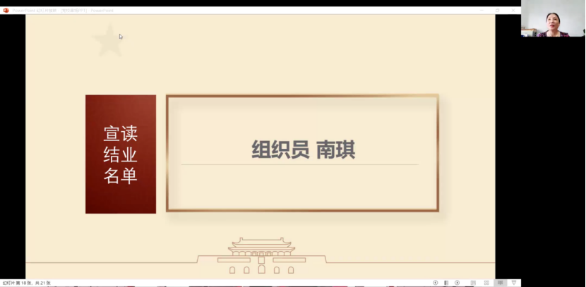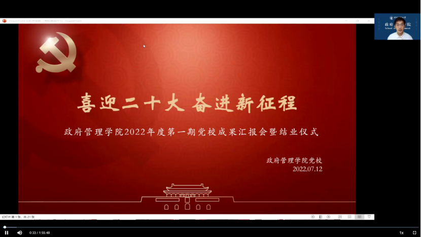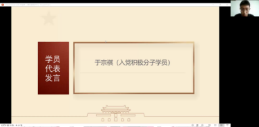 以史为鉴,继往开来,不忘初心,奋勇向前。值此二十大将至之际,437bwin必赢国际2022年度第一期党校成果汇报会暨结业仪式于2022年7月12日在腾讯会议平台隆重举行,437bwin必赢国际党委书记、党校校长吕丽研究员,副院长于鹏教授,党委副书记、纪委书记、党校副校长李宇环副教授,组织员南琪老师,学生工作办公室、党校办公室主任张小林老师,研究生工作办公室主任张鑫媛老师,本科生党支部书记、团委书记李莎莉老师,团委副书记、2020级本科生辅导员尹燕斌老师,2019级、2021级本科生辅导员许缤月老师,以及2022年度第一期党校全体学员参加了本期党校成果汇报会暨结业仪式。本次党校成果汇报会暨结业仪式由郭俊铭主持。