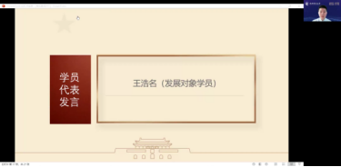 结业仪式上,入党积极分子代表于宗祺、发展对象学院代表王浩名分别发言,回顾党校学习生活,分享学习感悟。学员于宗祺表示,在党校的理论研究和实践学习中,他深刻认识到了作为新时代青年,应如何提高思想觉悟与综合能力,积极向党组织靠拢。本次的学习经历也更加坚定了他的入党动机,激励他端正心态,并于行动上严格要求自己,自觉提高党性,争取早日成为一名合格的共产党员。发展对象学员代表王浩名表示,从党校学习环节中他深刻感悟到,必须把理论知识与实践结合起来,才能实现自己的社会价值。党中央为打赢这场重大疫情防控攻坚战提供了坚强的领导力量和政治保障,也激励着他在今后的学习中严格按照党员标准要求自己,立志为实现共产主义而奋斗!