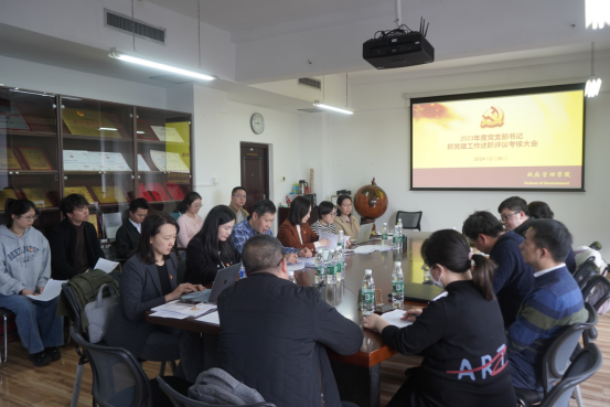 按照3年内每个党支部至少有1次现场述职的要求,本年度有4位党支部书记参加现场述职,其他7位任职不满半年的党支部书记进行书面述职。城市管理系教工党支部书记陈红霞、国际政治系教工党支部书记张鹏、行政人员教工党支部书记张小林、本科生党支部书记李莎莉4位同志依次进行现场述职。4位党支部书记详细汇报2023年度党支部工作情况,总结党支部在支部建设方面的经验成效,反思支部工作目前仍存在的问题短板,并在此基础上提出未来改进方向和下一步工作思路。