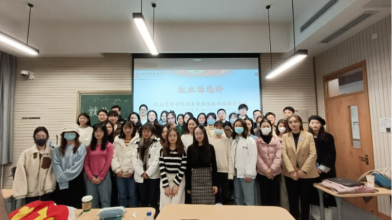 最后,祝琳同志作总结发言。研一新生表示通过几位毕业生学长学姐的分享,自己在综合考虑不同就业方向时有了更多依据,也在暑期实习、简历制作、岗位筛选、笔面试准备等方面学到很多技巧,会结合学长学姐的经验和建议,为获得良好的就业岗位提前规划、打好基础。