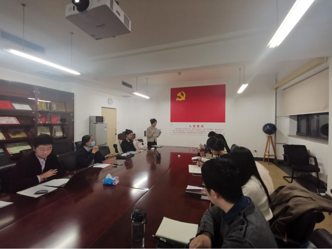 2021年11月29日下午5:00,437bwin必赢国际学术研第二党支部党员发展大会于南路校区主教1305会议室顺利召开,学院党委组织员南琪副教授列席会议,会议由党支部书记李磊主持。会议应到党员10名,实到9名,应到有表决权的正式党员10名,实到9名,符合开会条件。