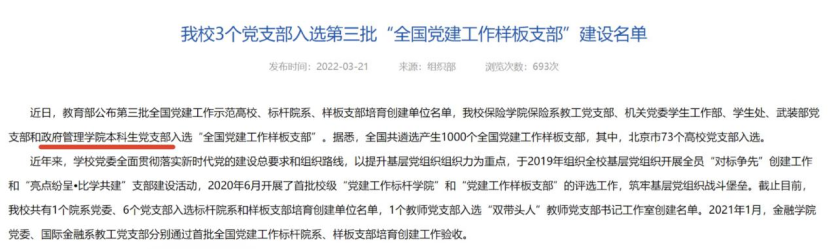 437bwin必赢国际本科生党支部把培养担当民族复兴大任的时代新人作为重要职责,把党建与一、二、三课堂“导入融合,同向同行”的模式,通过第一课堂讲理论、讲国情;第二课堂看祖国建设成就,看党团组织的先锋作用;第三课堂引导学生思考、发声,做正能量的传播者。坚持内容、方法、目标层面上“三个协同”,“因事而化、因时而进、因势而新”。支部学生党员积极参与北京市“双百行动计划”,用实际行动服务首都“四个中心”建设,三年来,立项6项,其中示范团队1项,优秀团队2项;鼓励支部成员积极参与学校党建和思政课题研究,三年来共立项17项。疫情防控,鼓励支部成员结合专业思考政府应急采购制度、城市应急管理体系、国际突发公共卫生事件;乡村振兴,支部成员利用暑期实践切实感知乡村振兴取得的巨大成果,多项成果获校级奖项。