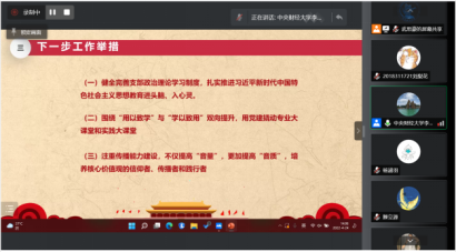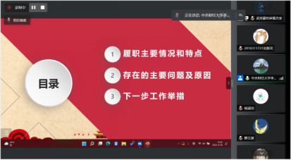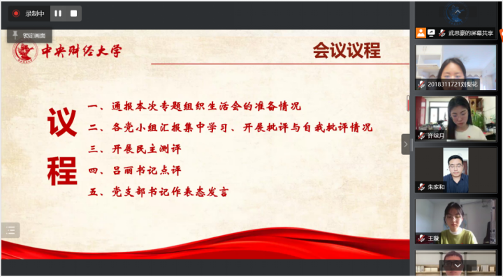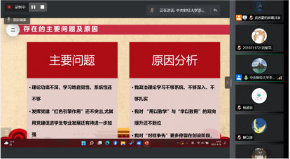 为深入学习贯彻习近平新时代中国特色社会主义思想和党的十九届六中全会精神,不断推进党的建设新的伟大工程,437bwin必赢国际本科生党支部于4月24日下午线上召开了2021 年度组织生活会和民主评议党员。支部全体党员参加了会议,437bwin必赢国际党委书记吕丽出席会议并讲话。会议由本科生党支部书记李莎莉老师主持。