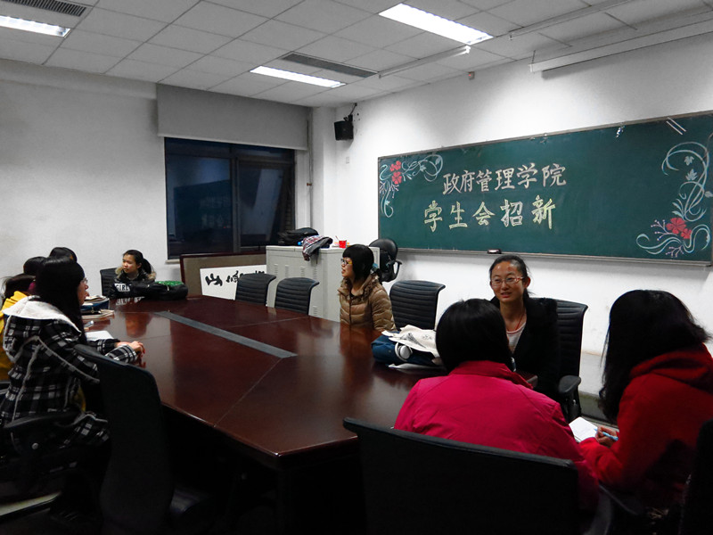 此次招新共有来自我院四个不同专业的六名同学参加三个部门的面试。各部面试工作同时开展,各部部长、副部长担任面试官。各部针对本部特点设计了面试题目,问题基本都涉及到了新人对院学生会和欲进入部门的认识,自己的优势,以及之前有无相关工作经验等。宣传部根据部门的工作特点考察了应试者的板书能力和海报设计能力;权益部为应试者设想了特定的情景,让应试者构思应对策略;采编部与应试者深入交谈,用最轻松的谈话方试来试探应试者的语言组织能力。面试官所提问题都与学生会日常工作紧密相关,很能考察应试者的基本功和随机应变能力。