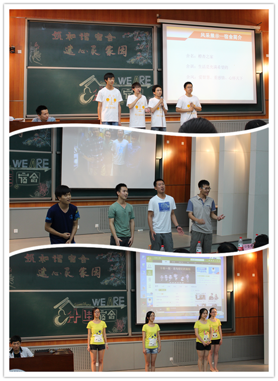 437bwin必赢国际共有三个宿舍入围本次评选,分别是东区三号楼313、314宿舍和西区五号楼5601宿舍。在东区三号楼313宿舍的展示中,四位来自五湖四海的小伙子组成了这个名叫“橙杏之家”的集体。他们秉承着“爱智慧、重感情、心怀天下”的舍风发起了橙杏小摊活动,不仅为同学们提供了便利,还考验了大家的诚信意识,不愧是心怀天下的“沙河好青年”。接下来上场的西区五号楼5601宿舍成员由四位漂亮可爱的女生组成,整洁的宿舍、优异的成绩、多彩的才艺是这个“温馨小家”呈现给大家的最大亮点。场下亲友团的阵阵呐喊使得现场气氛十分热烈,现场一名观众说:“好温馨的展示,心都被融化了。”东区三号楼314宿舍展现的是有福同享有难同当的浓浓兄弟情,大家在宿舍经常讨论学习、学术问题,四位同学在许多方面都取得了优异成绩。整洁的书桌和床铺让现场同学对男生宿舍有了新的认识,激昂的舍歌让现场同学激昂澎湃,赢得阵阵掌声。
