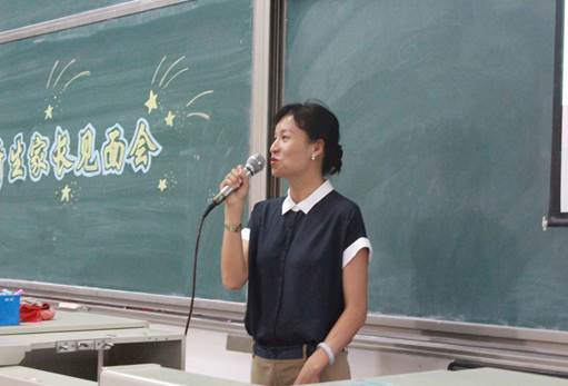 在阵阵热烈的掌声之后,党总支书记吕丽上台发表重要讲话。吕书记细致地介绍了学校和学院的基本建设和工作情况,并表示:希望和14级新生家长共同努力,将同学的价值观与学校的龙马精神相融合,将家庭教育和学校教育相融合,共同构建具有新风貌、新气象的437bwin必赢国际。