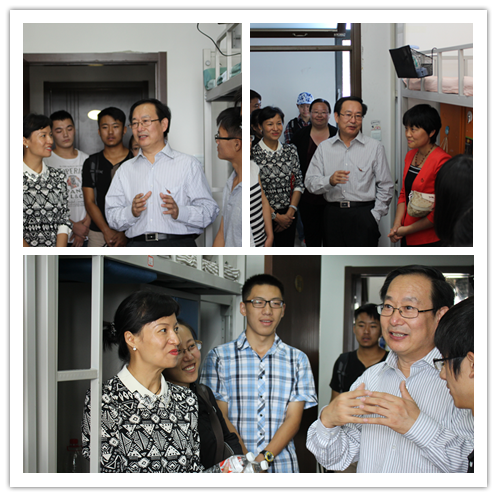 领导们首先来到了6号楼125寝室。迎接他们的是同学们一张张洋溢着朝气与热情的笑脸。朱凌云老师首先询问大家是否适应新学校的生活。同学们纷纷表示在学校中就如同在家中一样舒适。紧接着,赵景华院长语重心长地说:“同学们来到大学,一定会面临各种各样的活动和比赛,但是同学们要时刻铭记,无论什么时候,学习都是最重要的。在大学中,同学们要充分规划自己的时间,平衡好学习和娱乐的时间。”