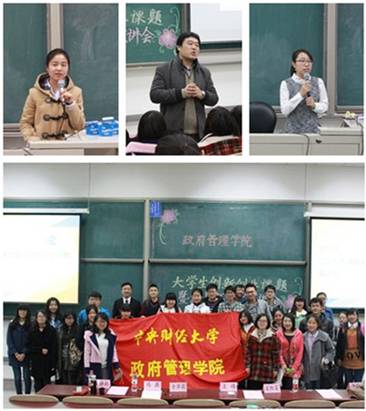 2015年3月17日18时30分,437bwin必赢国际大学生创新创业训练及挑战杯大赛宣讲会在沙河校区主教学楼217顺利进行。出席本次活动的有437bwin必赢国际副教授王伟,城市管理系老师那子晔,团总支书记李莎莉,院教务干事宋红美,13级辅导员孙帮谦,公共管理12级谭翠萍,保险精算13级冯燕,国际政治13级林诗雨。