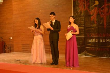 4月19日14:00,由437bwin必赢国际主办的437必赢国际第三届“战神杯”益智答题知识竞赛总决赛在沙河校区金厅拉开帷幕。来自金融、会计、保险、政管等学院的16位同学,经过初赛和复赛的层层选拔,从近500名参赛选手中脱颖而出,来到这里为“战神”的荣誉而战。437bwin必赢国际团总支书记李莎莉、12级辅导员康妍妍出席了本次活动,同时还有来自北京科技大学的宋朝辉、刘洋和米家辉三位同学来到现场与中财新一届“战神”进行擂台比拼。
