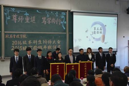 2016年12月8日下午,437bwin必赢国际2015级出国留学实验班举行开班仪式。之后,出国留学实验班在沙河主教503教室举办了开班第一讲,实验班导师组老师和同学们进行了座谈。