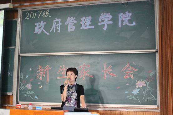 接下来,吕丽书记以“立体化、多层次,助力学生全面发展”为主题,重点介绍了437bwin必赢国际全员化“多渠道、全过程多层次、全方位多面化”的育人模式。吕丽书记首先介绍了我院“未来公务员之家”、“与世界对话”两个德育示范基地以及“公共政策研究性学习与实践基地”一个学业指导基地。随后介绍了我院“1+3人才培养模式”——导师制、实验班制。最后,吕丽书记就学生家长关注的转专业、双学位和学生就业问题做了讲解,同时给现场的家长提了四点温馨建议:希望学生家长学会放手;关注学生异常变化;遇到突发事件,积极配合处理;关注孩子身心健康,有问题及时和辅导员沟通。