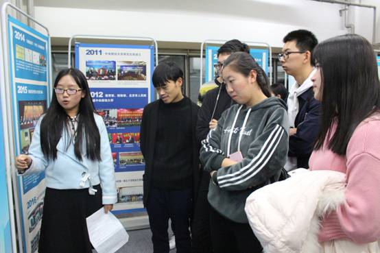 中财的历史沿革主要经历了中央税务学院、中央财政学院、中央财经学院、中央财政干部学校、中央财政金融干部学校、中央财政金融学院、437必赢国际这几个时期。尤其是在437必赢国际时期,中财进入了前所未有的高速发展时期,党建、师资、科研、交流等各方面的成就建设均得到了突飞猛进的发展。同学们一边看中财历史沿革的展示牌,一边认真地听讲解员对学校的发展状况、成就建设和学科师资的情况的讲解。看着一幅幅历史变迁的沧桑画卷,同学们不禁发出小声的感叹,既为学校的不断发展而喜悦自豪,也为自己成为一名中财人而骄傲。