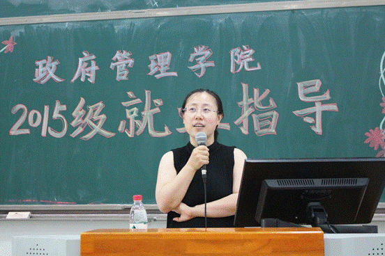 2015级本科生辅导员黄莎老师简要介绍了本次会议的目的和流程后,李莎莉老师从国内升学、出国留学以及就业三个方面为同学们展开了毕业意向分析。