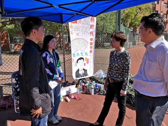 2018年9月21日上午9:30,437bwin必赢国际党委书记吕丽老师、党委副书记白云真老师老师来到十营即437bwin必赢国际所在的新生营队中考察新生们的训练情况。