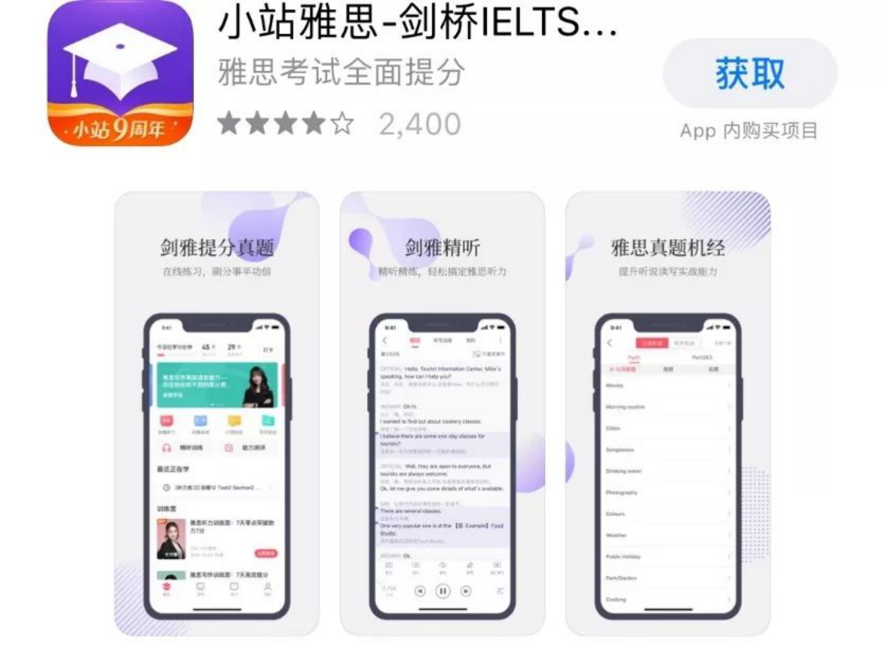 2.英语学习资料:小站雅思(雅思专用)、星火英语app(四六级、考研英语必备神器)