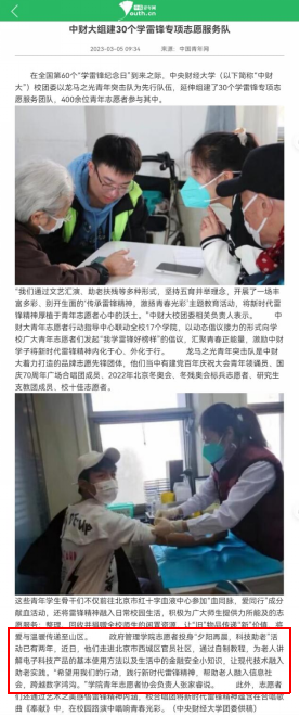 中国青年网刊发中财大组建30支学雷锋专项志愿服务队