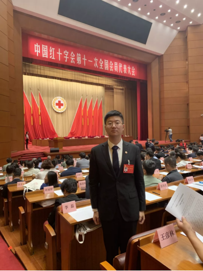 经学校红十字会和北京市红十字会推荐,我院辅导员李磊作为北京市唯一一名青少年志愿者代表出席了本次大会,在人民大会堂受到了党和国家领导人习近平、李克强、王沪宁、王岐山等同志的接见;在大会开幕式上,作为红十字志愿者宣读《国际红十字会与红新月运动基本原则》;在9月3日的全体会议中,成功当选中国红十字会第十一届理事会理事,全国共四名青少年代表当选。