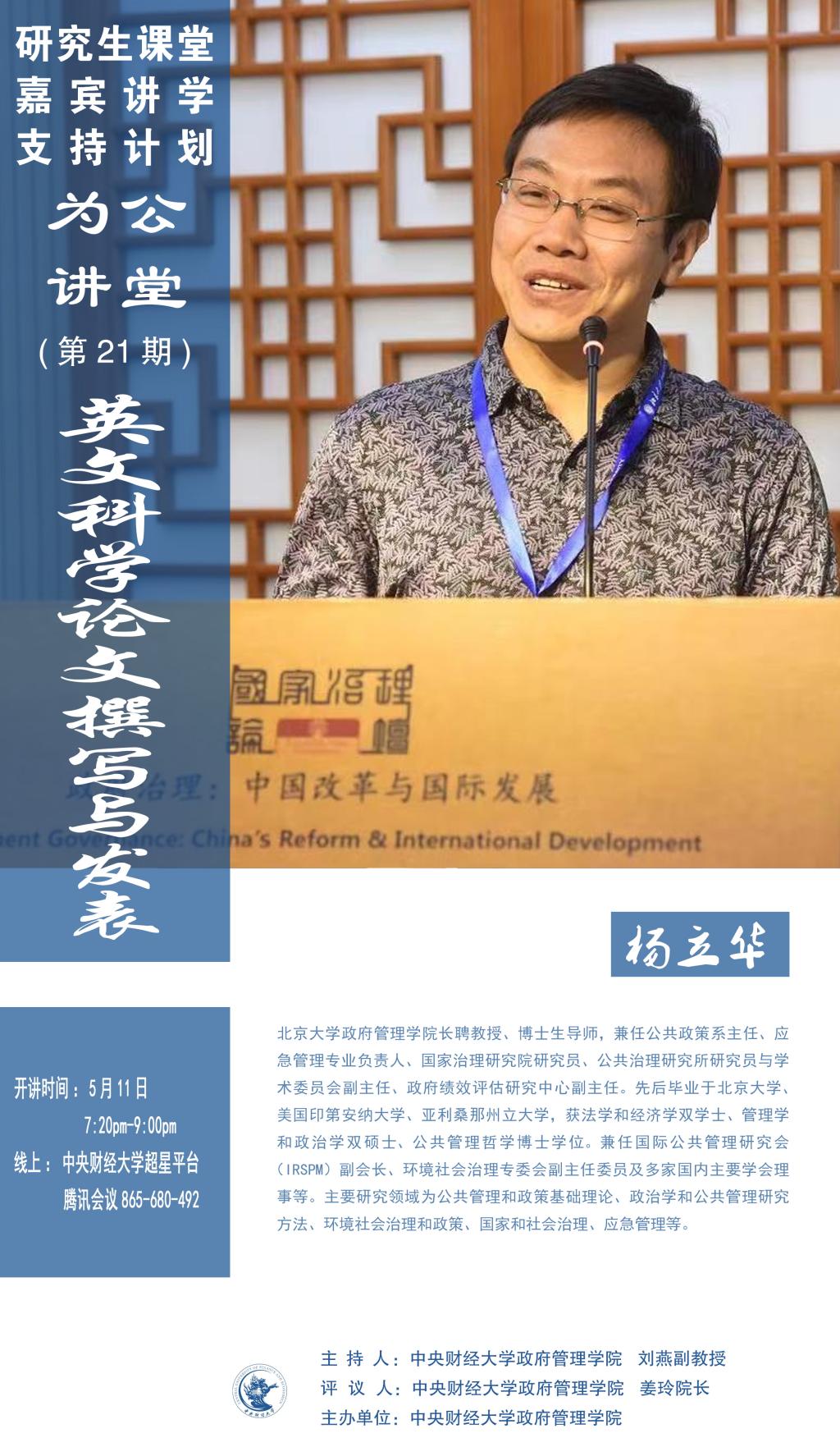 嘉宾简介:杨立华,北京大学437bwin必赢国际长聘教授、博士生导师,兼任公共政策系主任、应急管理专业负责人、国家治理研究院研究员、公共治理研究所研究员与学术委员会副主任、政府绩效评估研究中心副主任。先后毕业于北京大学、美国印第安纳大学、亚利桑那州立大学,获法学和经济学双学士、管理学和政治学双硕士、公共管理哲学博士学位。兼任国际公共管理研究会(IRSPM)副会长、环境社会治理专委会副主任委员及多家国内主要学会理事等。主要研究领域为公共管理和政策基础理论、政治学和公共管理研究方法、环境社会治理和政策、国家和社会治理、应急管理等。