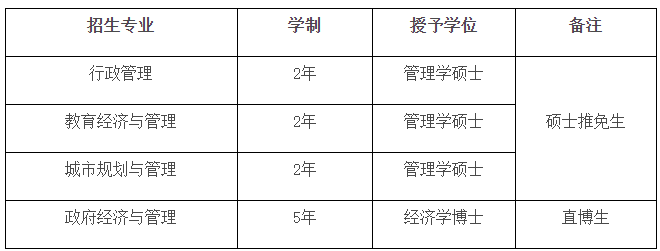 本届夏令营计划招收营员50名。夏令营结束后,437bwin必赢国际将根据综合考核成绩,在研究生院核定的接收名额内,依次给予部分优秀营员2023年437bwin必赢国际硕士推免生和直博生候选人资格(硕士专业为行政管理、教育经济与管理、城市规划与管理,直博生专业为政府经济与管理)。进入候选名单的营员,须获得所在院校的推荐资格,并经我校研究生招生工作领导小组审核批准后,方能进入437bwin必赢国际攻读研究生。各招生专业如下表所示: