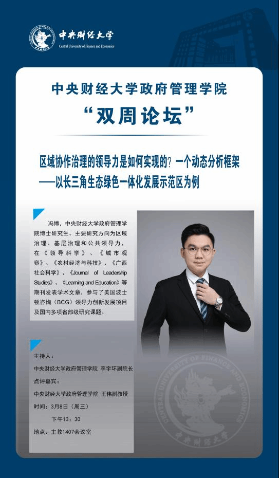 ●讲座主题:区域协作治理的领导力是如何实现的?一个动态分析框架——以长三角生态绿色一体化发展示范区为例