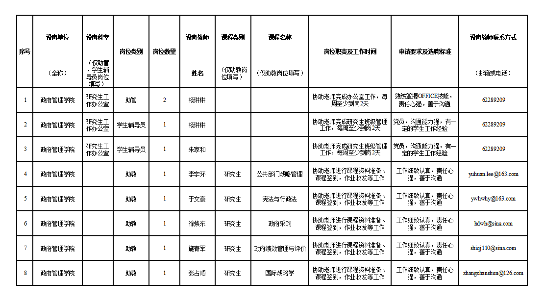 437bwin必赢国际2023-2024学年第二学期“三助一辅”设岗情况表