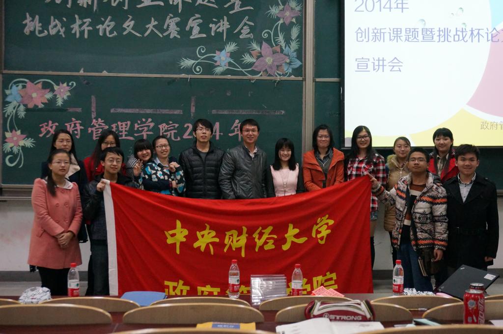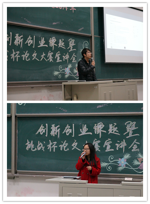 3月19日18时30分,437bwin必赢国际2014年创新创业课题宣讲会在主教108隆重举行。437bwin必赢国际团总支副书记冯梦迪主持会议,学院副院长于鹏、城市管理系老师王伟、学院团总支书记孙帮谦、11级国政班陈剑煜、12级公管班杜晶晶、12级公管班谭翠萍、11级会计1班谢雯丽出席本次大会。会议主要对即将举行的2014年大学生创新创业项目进行宣讲。