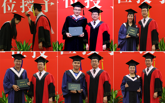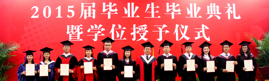 典礼开始前,学院精心准备的往日校园生活照片集锦和视频“年华政好,青春飞扬”展现在了毕业生们面前,深情的回顾立刻将同学们拉进了对往事的追忆中,照片和视频中浮现出曾经的点点滴滴深深感染了现场的每一位同学。在庄严的国歌声中,典礼正式拉开帷幕。党总支书记吕丽宣读《关于2015届本科生毕业及授予学士学位的决定》和《关于2015届研究生毕业及授予学士学位的决定》,党总支副书记栗玉香宣读《关于表彰2015届本科优秀毕业生的通知》及《关于表彰2015届优秀毕业研究生的通知》。赵景华院长和王吉府教授先后为我院市级优秀毕业生和校级优秀毕业生颁发荣誉证书并合影留念。