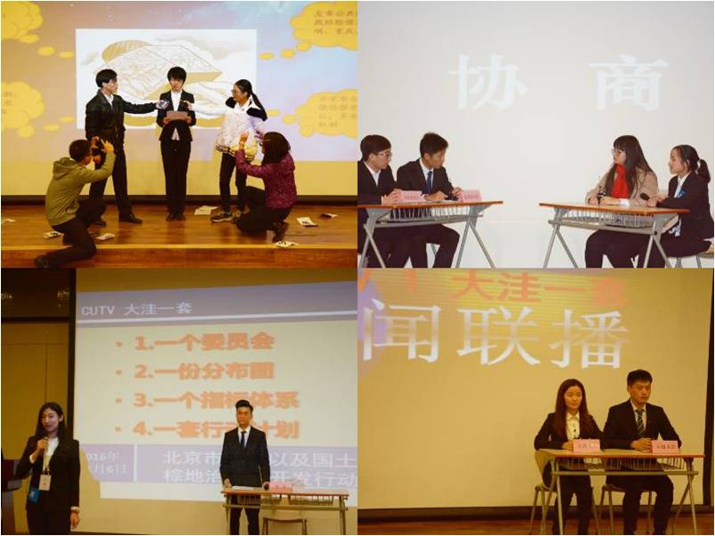 本次参加决赛的队伍共有9支,成员分别来自437bwin必赢国际、经济学院、法学院、财政税务学院、保险学院、会计学院等多个学院。大赛设有“锋芒初露”、“情景模拟”、“市长终极PK”三个环节。参赛队伍分别围绕北京市生活型街道人性化改造策略、医患关系梳理、农民工市民化成本分担及公共服务供给研究、“棕地”修复与再开发研究、邻避运动、特色小镇、胡同保护、城市信用体系建设等话题,首先以视频展示等方式介绍选题意义、调研过程以及队伍人员构成,接着以情景模拟的形式将研究主题的现实矛盾反映出来,并在情境中梳理问题,提出解决思路。各参赛队采用了市长工作会、市长调研、听证会、新闻调查等形式进行情景模拟,或风趣诙谐,或现实深刻,一步步将比赛推向高潮。最后,由评委老师抽取一道公共管理方面的现实问题,各参赛队“市长”同台作答,进行现场演讲。各位“市长” 才思敏捷、各抒己见,临场发挥充分体现了其作为“市长”的思维和风采,赢得阵阵掌声。随后,由评委老师提名,大众评审票选出本届“最佳市长”。