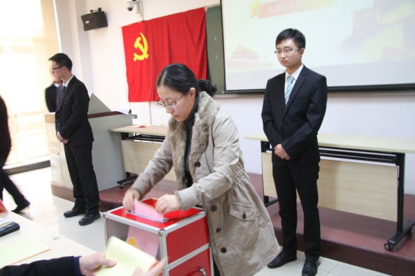 按照学校党委对学院党委换届选举工作的部署和要求,437bwin必赢国际党委于2016年11月16日下午13:30在中财大厦二楼通用教室四召开学院党员大会,会议主要议程是选举新一届437bwin必赢国际“两委”委员。全体党员同志在欢快的乐曲声中步入会场,会场前方悬挂着鲜红的中国共产党党旗,会议现场气氛热烈,庄重和谐。