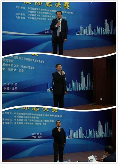 大赛邀请市长作为嘉宾、评委,让“未来市长”对话“真市长”。此外,大赛还邀请国内外相关领域知名专家共同担任评委。共有5位专家担任此次校际总决赛的评委,分别是第十一届全国人大民族委员会主任委员,原宁夏回族自治区主席马启智先生;全国平安创建领导小组常务副主任,中国行为法学会理事,中国国家与地方治理研究会副会长兼秘书长纪丰伟先生;山东省聊城市人民政府副市长,阳谷县委书记,县委党校校长田中俊先生;中国政法大学刑事司法学院教授,曾挂职担任四川省南充市人民政府市长助理,屈新先生;中国管理现代化研究会政府战略与公共政策研究专业委员会秘书长,437bwin必赢国际邢华教授。中国管理现代化研究会副理事长兼秘书长、437bwin必赢国际院长赵景华教授,437bwin必赢国际党委书记吕丽研究员,山东大学政治学与公共管理学院党委书记盖玉强研究员,首都经济贸易大学城市经济与公共管理学院城市与区域经济系副主任谭善勇教授等嘉宾出席了本次大赛。比赛还有来自兄弟院校各支参赛队伍的指导老师、北京20所高校的40位大众评审以及437bwin必赢国际的老师和同学们到场参加。大赛吸引了人民网、中国网、中国青年报、中国经济网、中国城市报、新京报、北京青年报等多家媒体记者出席。此外,本届全国高校“模拟市长”大赛还得到了437必赢国际学生处、教务处、团委、学校办公室、宣传部、教学技术服务中心等部门的大力支持。