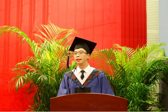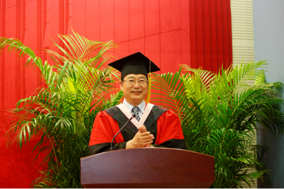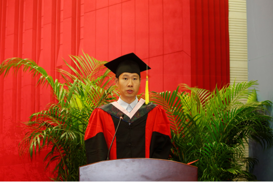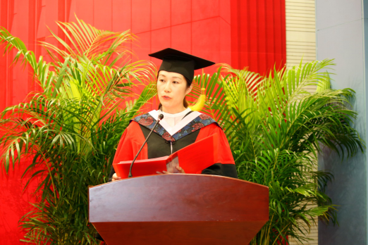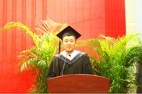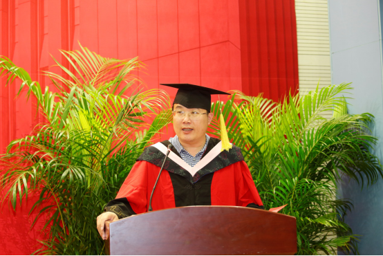 典礼进行第四项,赵景华院长致辞。赵院长对毕业生们圆满完成学业表示热烈的祝贺,对毕业生的父母、师长、亲人和朋友致以崇高的敬意和衷心的感谢!在437bwin必赢国际学习的几年中,同学们付出了汗水、辛勤、努力与真诚,收获了知识、理想、成长与友谊;在思想政治上逐步走向成熟,在学业、研究上取得长足进步,同学们的历史使命感和社会责任感变得更加强烈,国际战略视野和领导与管理能力不断提升,这些成长都让学院倍感欣慰和骄傲。院长指出,同学们正处在一个伟大的时代,新一轮科技革命在世界范围内展开,面向未来,如何捕捉先机让中国从前几次科技革命的旁观者、参与者,向新一轮技术革命的引领者转变,是摆在我们每个人面前的重任。在同学们即将踏入新时代的社会,开启人生新时代之际,赵院长向大家提出三点期望:志当存高远,心当存澄洁,永远保持学习和思考的热情,永葆探求新知和追求真理的活力,长存刚正不阿之正气、兼容并蓄之大气和坚持真理之骨气;坚守责任之心,勇于奉献担当,在工作岗位上勇挑重担、攻坚克难,用自己的聪明才智为国家的强盛、为人民的幸福、为中华民族的振兴、为人类文明的进步做出自己的贡献;保持豁达心态,包容万象世界,以豁达的心态直面高潮与低谷,以宽容的性情去对待失落和坎坷,始终保持沉着、理性、平和的心态。最后,赵院长寄语在座同学:满怀希望的去开拓自己的人生新时代,铭记中财的美好时光,勤勉努力,砥砺前行!