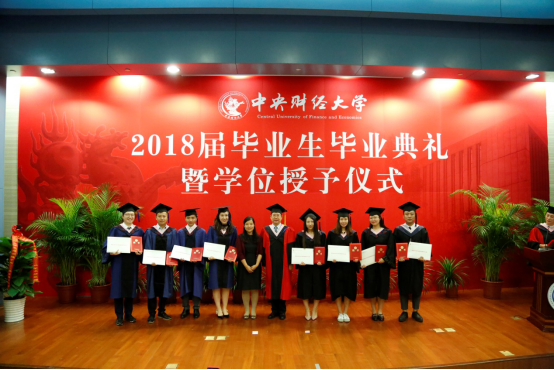 典礼进行第八项,2018届新校友接收仪式。学院推选出八位同学作为校友大使,院长赵景华教授和校友总会副秘书长李松莉老师向他们颁发大使聘书,并赠送礼包。从此,245位437bwin必赢国际毕业生正式加入中财校友大家庭,437必赢国际校友总会和80个海内外校友分会也将会成为他们未来发展的重要支撑。