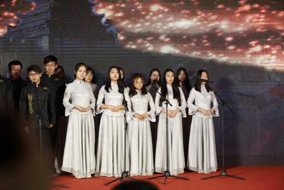 国际友谊队吟唱《留学生遇见中国诗词》。中华诗词的魅力之大,令国际友人都为之陶醉、为之折腰。中华经典文化灿若星河,是沟通中国与世界的桥梁。