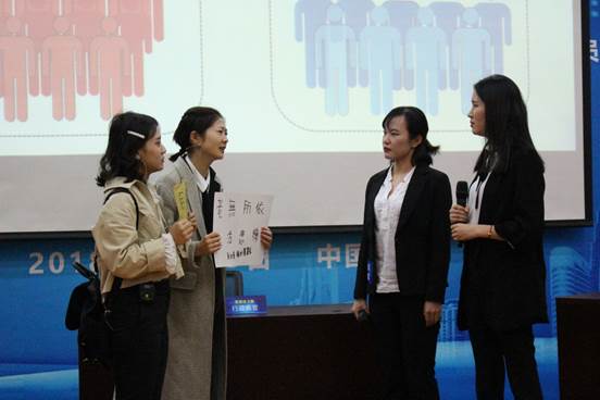 作为本环节中的非常重要的一个部分,团队的情景展示不仅给比赛带来了趣味、营造了轻松的氛围,更为参赛队伍提供了一个自由的展示窗口,使各支队伍能够通过生动的表演形式剖析现实问题,让研究主题所反映的社会现实更加“深入人心”,表现了当下中国关注民生的社会风气。各个团队的表演风趣幽默而又引人深思,引来嘉宾与观众们的阵阵欢笑与热烈掌声。