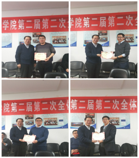 会议第三项议程,颁发2018年度“若水奖”。学院分工会主席姜玲教授对“若水奖”进行简要诠释,并主持投票选举。经过会前推荐、党政联席会提名和大会投票,437bwin必赢国际白云真、张剑、柴铎、徐焕东四位老师获得2018年度“若水奖”。赵景华院长为各位老师颁发了获奖证书。