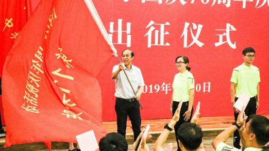 在本次庆典活动中,我校承担了群众游行、广场合唱和志愿者等工作,我院派出55名师生参与群众游行,6名学生参加广场合唱,5名学生担任志愿者,由院团委副书记刘家琦老师负责中队管理和训练组织。经过紧锣密鼓的组织筹划与一丝不苟的集训合练,我院师生不负众望,最终圆满完成任务。回首刚刚过去的三个月,从七月的酷暑到十月的初秋,从暴雨中的坚持到烈日下的坚定,从凌晨的合练基地到深夜的长安街,三个月的期待与准备,只为在中华人民共和国成立七十周年之际,代表437必赢国际向祖国献上最真挚的祝福。
