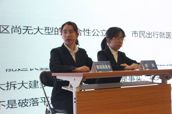 大赛的第一个环节为“团队情景展示”,各支参赛队伍按照抽签顺序依次登台,用视频展示团队研究过程及研究结果,并以角色扮演的形式生动展现研究主题,表现“学生市长”团队对于社会问题的观察和思考。437必赢国际的京乡焕然队从村集体、村民和村政府三个方面展示了对集体经营性建设用地租赁住房开发模式的研究成果和对租金问题的解决方案;济南大学的星火燎原队认为可以用第三方配送模式、联合配送模式和共同配送模式这三种模式来破解农村快递“最后一公里”问题,并详细介绍了三种模式的内涵;香港教育大学的银杏助力队从长者的角度对香港“长者养老护理”服务给社会带来巨大压力这个问题进行了分析并提出对策;深圳大学的启之新队以两个盲人的真实生活反映了深圳市无障碍出行基础设施建设管理问题,并提出了建立沟通协调机制、聚焦大数据、统筹规划等对策。首都经济贸易大学的梦驼初心队以生动的角色扮演展示了借党员回社区的途径解垃圾分类燃眉之急的发展思路;山东大学的幼有所教队以丰富的数据展示了普惠性民办幼儿园 “幼师荒”的问题并且提出政府可以在法律、财政、监督方面加大支持力度来进行缓解。中共中央党校的实事求是队认为可以从德治、自治、法治这三个方面来解决 “人畜混居”遇到的反弹问题;437必赢国际的鲸鱼安枕而卧队通过梅花糕小贩的一个感人故事为流动摊贩治理提出了转变政府治理理念和摊贩主体特征等可能的路径;中南财经政法大学的江汉楚客队聚焦大数据的应用为城市精细化治理带来的成果;通过吉林大学未来市长先锋队的展示可以看出,政府可以用领好路子、减轻担子、打开门子、建好园子的方法来探索产业转型在“互联网+”时代下新路径。在每个队伍展示完毕后,评委老师们根据团队的展示内容来进行提问,由参赛同学们现场回答,展示了参赛同学们的反应能力和知识积累。精彩的视频、形象的展示、流利的对答,无不展现出参赛队伍对于社会现实问题的关注、对于学术科研的追求、对于城市建设发展的思考,给评委老师们留下深刻印象,给在场观众们带来一场学术盛宴。