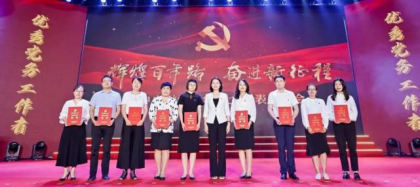 大会热烈庆祝中国共产党成立100周年,并对学校自2019-2021年度期间党建和思想政治工作表现优异、成绩突出的党组织和个人予以表彰。学院党委书记吕丽、院长姜玲、副院长于鹏、副院长张剑、党委副书记李宇环以及部分教工和学生党支部代表参加表彰大会。