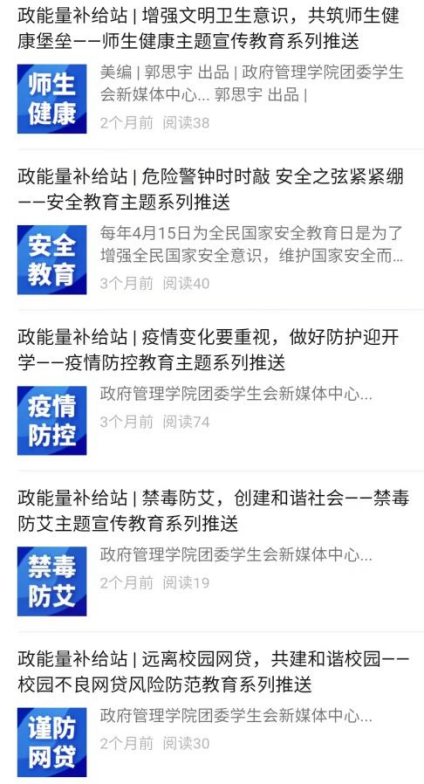 新生引航持续化。以新媒体为抓手,建立网络思政阵地,新生班级公众号同“中财政管”协同并进,传递正能量信息,讲好政管故事,引领网络空间的清正风气。总结新生引航工程,提取凝练工作机制和工作特色,推进新生教育的持续化,实现新生引航工作的行稳致远。