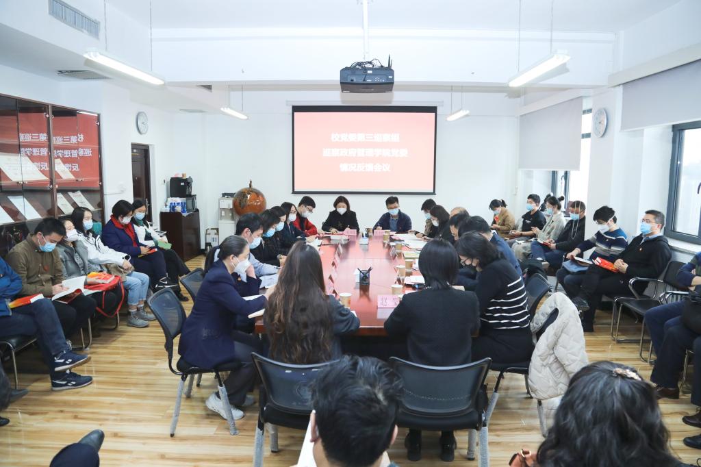 校党委巡察工作办公室主任李岩,校党委组织部副部长袁敏,校党委第三巡察组全体成员,437bwin必赢国际教职工和学生代表参加会议。