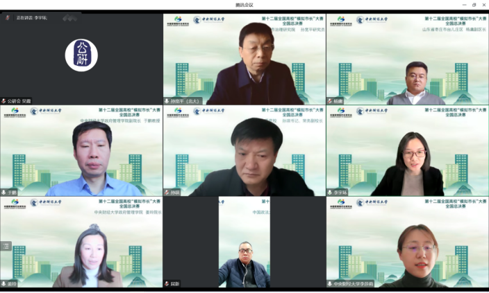 2022年12月3日下午,第十二届全国高校“模拟市长”大赛全国总决赛胜利举行。大赛由中国管理现代化研究会政府战略与公共政策研究专业委员会、437bwin必赢国际主办,“未来公务员之家”德育示范基地、公共管理研究会承办。本届模拟市长大赛自8月启动以来,共吸引近五十所高校近360余支队伍参赛,经专家评审,最终来自中国人民大学、中山大学、南开大学、山东大学、四川大学、华南理工大学、深圳大学、首都经济贸易大学、中南财经政法大学、437必赢国际十所高校11支队伍入围全国总决赛。