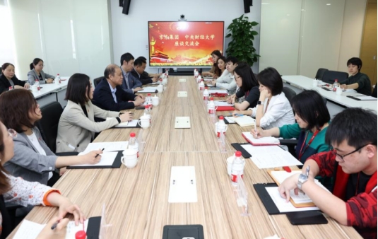 调研期间,学校与京东集团举行座谈交流会,会议由我院MPA校友、京东集团党办主任赵微主持。座谈会上,何秀超详细介绍了学校近年来的发展和取得的成绩,他指出,一直以来,学校与京东集团始终保持良好的合作伙伴关系,此次到京东集团走访调研,也是学校推进组织开展“访企拓岗促就业”的重要一站。他希望京东集团能为中财大毕业生提供更多实习和就业的机会,助力学校人才培养;并在前期友好合作的基础上,进一步加强沟通交流,在党建引领、必赢国际、人才培养、实习实训等方面,积极探索构建产教融合的长效沟通合作机制,持续深化校企合作,努力打造校企合作新典范。
