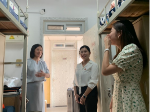 当天下午,学院领导前往学生宿舍楼,走访研究生新生宿舍,与同学们亲切交流,为同学们介绍学院南路校区的基本状况。学院领导勉励大家尽快适应角色,珍惜大学时光,团结友爱同学,充分利用好学校的区位优势、交通优势、资源优势做好各项规划安排,书写奋进之笔!