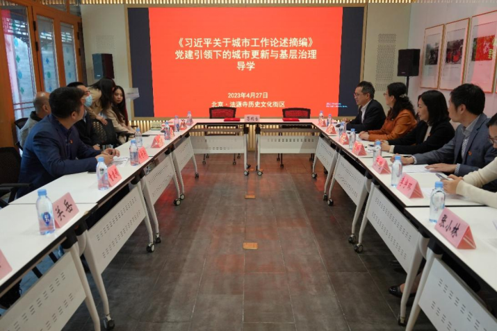 4月27日下午,437bwin必赢国际专题读书班成员、党委理论学习中心组(扩大)一行走访北京宣房大德置业投资有限公司(以下简称“宣房大德”)。围绕“党建引领下的城市更新与基层治理”主题,开展学习贯彻习近平新时代中国特色社会主义思想主题教育联学联建。联学中,宣房大德规划前期部副经理陈庆红女士详细汇报了党建引领法源寺历史文化街区城市更新项目的成功案例,宣房大德充分履行国企社会责任,展现国企责任担当,围绕服务首都“四个中心”建设,以改善民生福祉、保护历史文化、完善街区功能、提升街区活力为核心目标,坚持党建引领、坚持联建联动、坚持为民服务、坚持机制创新,实现了法源寺历史文化街区的健康发展。学院MPA教育中心副主任、城市管理系温锋华副教授作《习近平关于城市工作论述摘编》领学导读。他谈到,习近平总书记关于城市工作的重要论述,立意高远,内涵丰富,思想深刻,明确了城市发展的价值观和方法论,深刻揭示了中国特色社会主义城市发展规律,深刻回答了城市建设发展依靠谁、为了谁的根本问题,以及建设什么样的城市、怎样建设城市的重大命题,为新时代做好城市工作指明了前进方向、提供了根本遵循,深入系统学习《习近平关于城市工作论述摘编》,对我们更好的理解新时代我国城市工作的方向,结合我院实际扎实开展城市更新、城市治理等领域研究具有重要意义。随后,与会人员围绕研学主题开展了深入研讨。姜玲院长发言指出,城市更新不仅是城市开发建设方式的转变,也是城市治理特别是基层治理的进一步深化,是形成有中国特色的基层治理体系的重要部分。于鹏书记发言指出,深化党建引领基层治理,聚焦城市更新重点工作,是全面贯彻落实党的二十大精神和习近平总书记关于城市工作重要论述的生动实践。加强基层党的建设、巩固党的执政基础是贯穿城市更新与基层治理、基层建设的一条红线,要充分发挥基层党组织的领导核心作用,夯实基层社会治理根基,全力打造共建共治共享的基层治理新格局。与会人员先后参观了法源寺历史文化街区红色会客厅、街区智慧停车场、人才公寓共生院落等项目,开展了生动的实地研学。